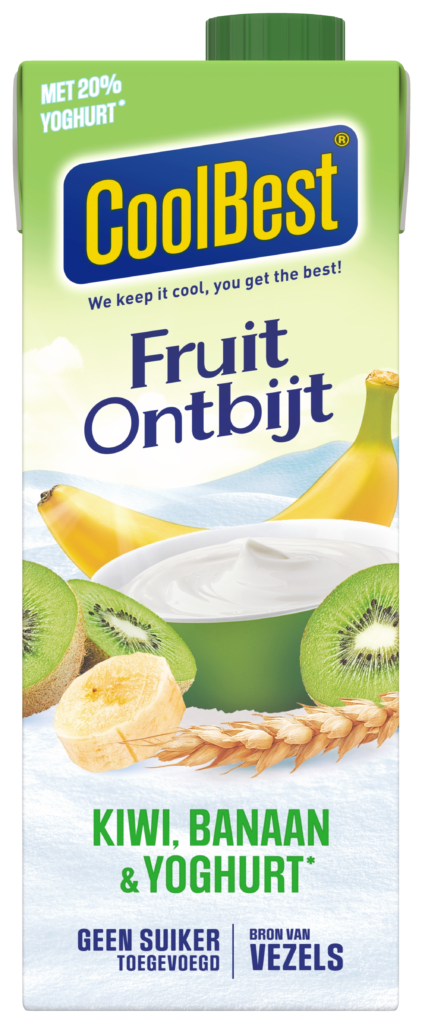 Een heerlijke ontbijtdrank vol fruit, 20% yoghurt* en met vezels: CoolBest FruitOntbijt.