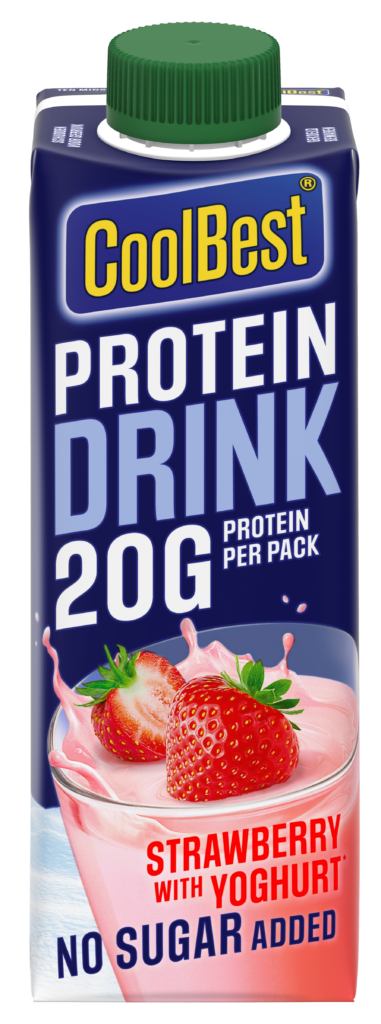 CoolBest Protein Drink, een unieke proteïne yoghurt drink gecombineerd met de beste kwaliteit fruit. Het is een mix van 40% fruit en 20 gram proteïne, vetvrij en zonder toegevoegde suikers! De eiwitten in deze drank houden je spieren sterk en ondersteunen je botten. Begin je dag lekker en fruitig! Ook handig voor onderweg!